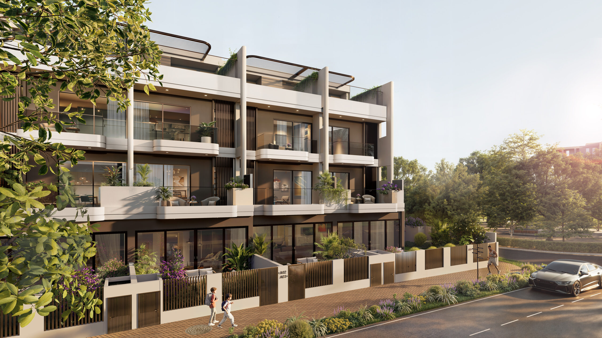 At SOL TERRA CASA, ultra-luxury townhouses are elevated by a thoughtfully curated 30,000 SQFT SHARED PODIUM AMENITIES as a complete lifestyle destination. A seamless blend of indoor and outdoor experiences unfolds from a kids play area, multipurpose entertainment room, outdoor cinema, indoor gym, yoga studio, and spa with changing facilities, to an expansive outdoor realm featuring a multipurpose court, pet garden, BBQ and dining spaces, sun loungers, outdoor decks, table tennis, and a dedicated yoga area. Families enjoy dedicated kids’ zones including play areas and a kids pool, while a serene swimming pool, jacuzzi, and outdoor running track complete a setting where wellness, leisure, and community come together effortlessly, surrounded by lush, nature-led landscapes.