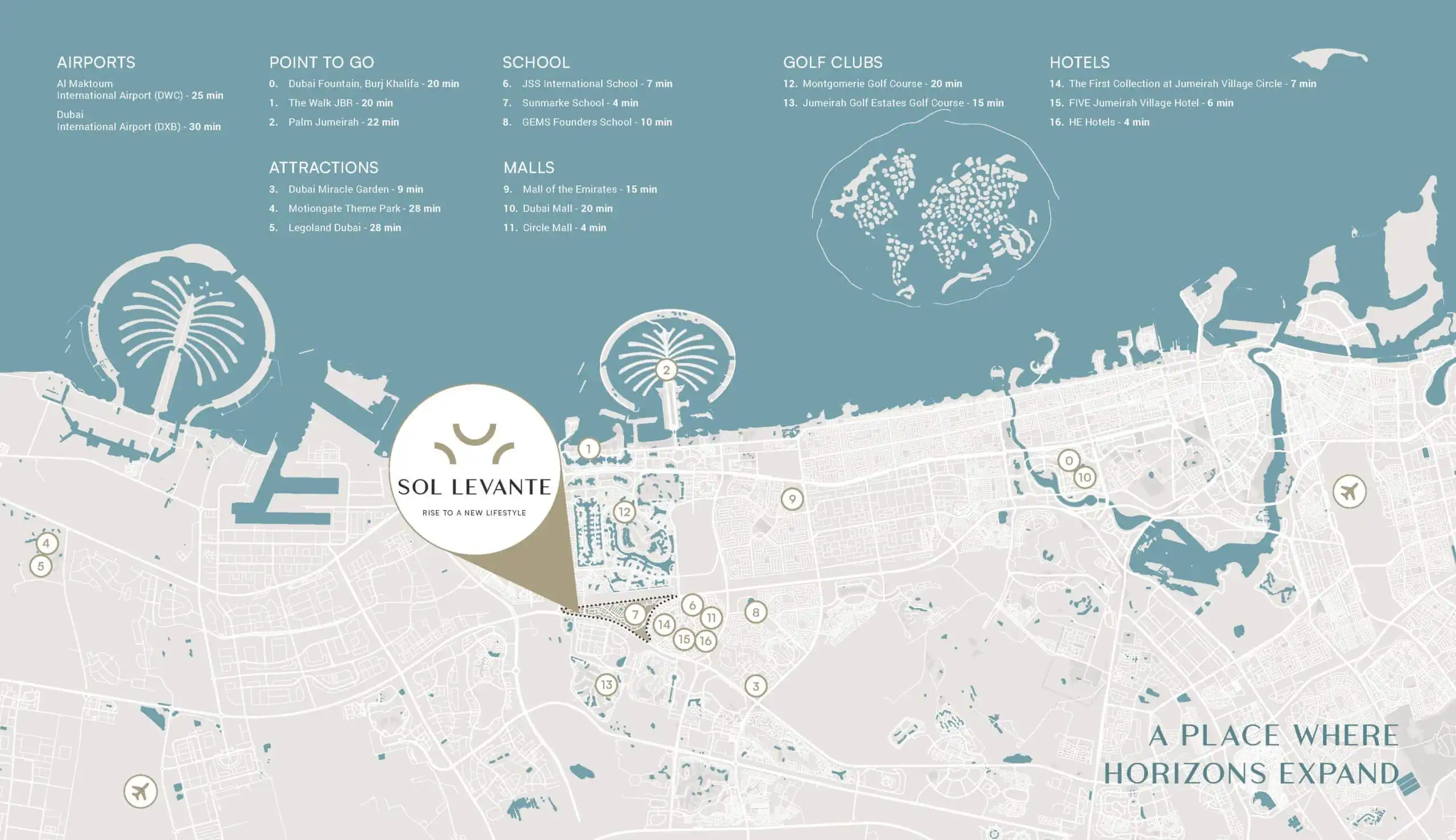 Properties in JVT are increasingly favored for their blend of community ambiance and modern urban conveniences. Residents of SOL LEVANTE enjoy quick access to top-tier schools, renowned hospitals, and iconic lifestyle destinations like Palm Jumeirah and Dubai Miracle Garden. World-class golf courses, retail centers, and entertainment spots, the surrounding area complements a luxurious, well-rounded life.